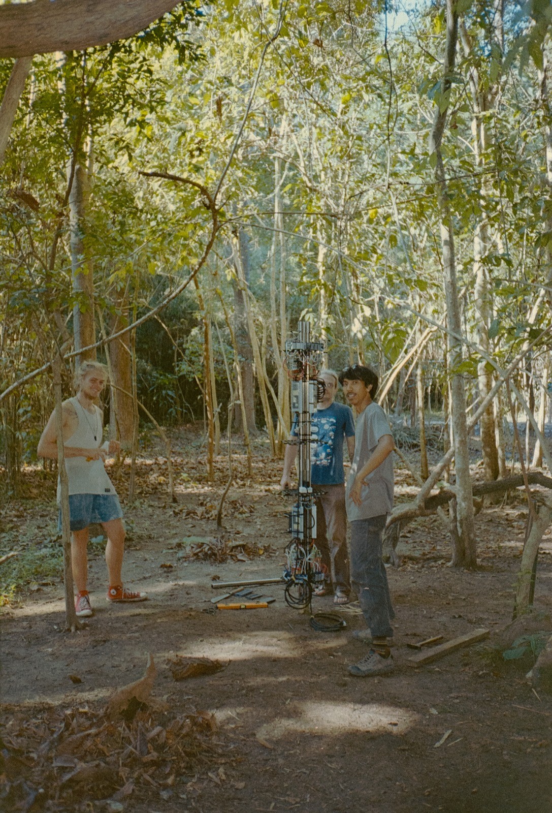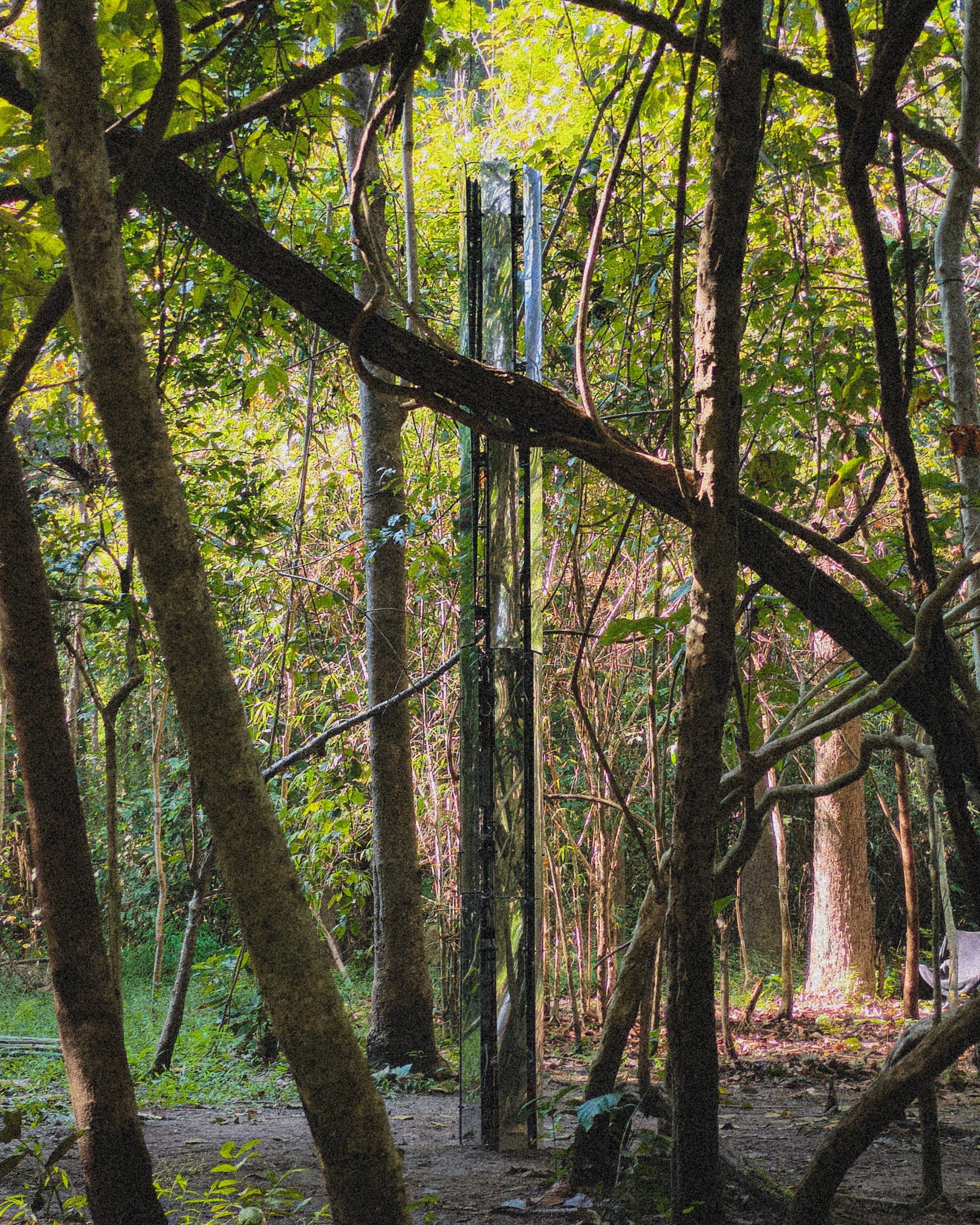 Tucked within the dense, shaded canopy of the forest, a quiet structure stood—a column of mirrors, an outlier in the natural world. This was The Pillar I, a collaboration between local Northern Thai artists Denchai and Bengt.